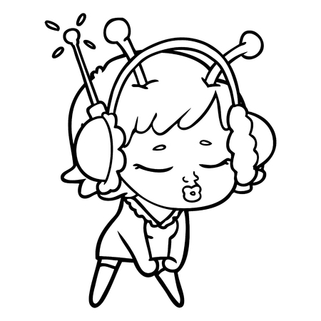 音楽を聴くかわいいエイリアンの女の子 のイラスト素材 ベクタ Image
